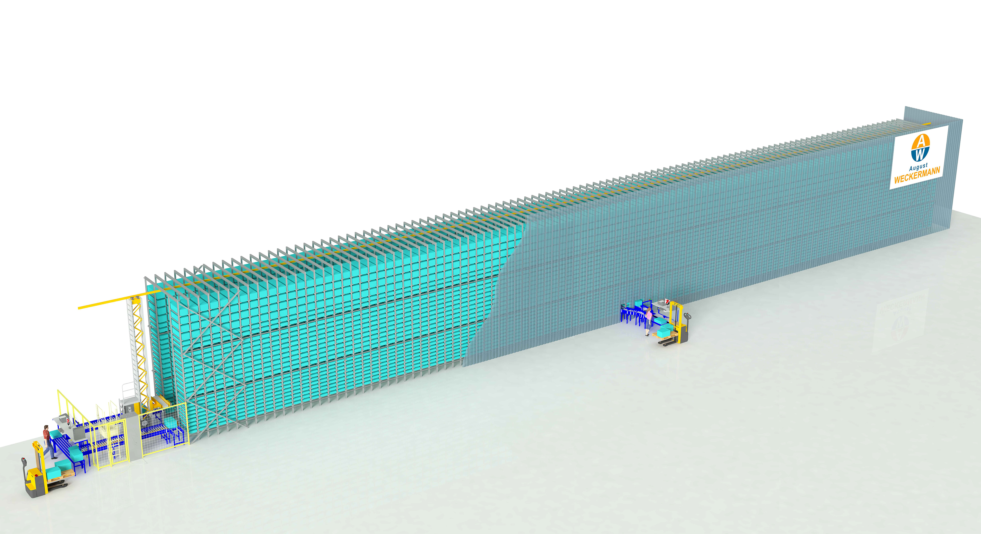 Das eingassige AKL verfügt über mehr als 10.000 Stellplätze und ist mit Kommissionierarbeitsplätzen an der Stirn- und der Regallängsseite ausgestattet. In dem 60 x 4,2 x 7,3 m großen Lager wird künftig an fünf Tagen in der Woche gearbeitet. Bereits im Einschichtbetrieb erweist sich Jungheinrichs Automatisierungslösung als effizienteste Option. "Unser Angebot hat hinsichtlich Prozessgeschwindigkeit, Kapazität und Energieeffizienz überzeugt", sagt Claus Bode, Projektmanager ASRS bei Jungheinrich. Zum Lieferumfang der Gesamtlösung gehört auch das Jungheinrich Warehouse Management System (WMS), das in die bestehende IT-Umgebung von August Weckermann integriert wird. Die flexible Anbindungsmöglichkeit des WMS an das bestehende Host-System war bei der Auftragsvergabe von zentraler Bedeutung. "Jungheinrich hat im Vorfeld verschiedene Szenarien für die Schnittstellenanbindung aufgezeigt und uns flexibel und ergebnisoffen beraten", erklärt Jens Schuler, Projektleiter bei August Weckermann. "Letztlich hat uns das vollumfängliche WMS für die Lagerverwaltung überzeugt."